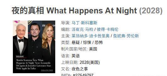 问:你在选择角色时总会优先考虑大导演,马丁·斯科塞斯位列榜首。关于你和另一位奥斯卡得主詹妮弗·劳伦斯合作的《夜的真相》,你能告诉我们要期待什么吗?目前的描述让人联想到《闪灵》和《禁闭岛》。你能透露些什么?你希望下一部就拍这个吗?小李: 目前还在进行中。但我知道的是,马丁对这个素材有着难以置信的渴望和连接感。我不确定能否把它和《闪灵》或《禁闭岛》相提并论。我觉得他深受《迷魂记》这类电影的影响,他想拍的这部电影关于人际关系,关于接受悲伤,关于学会放手的能力。这是一个爱情故事,但同时也关于接受你在此生中被赋予的现实。这将是一段有趣的旅程。我们还在整合所有碎片,但马丁对自己想做什么有非常坚定的想法。当我们制作这部电影时会有很多探索,因为它可能会走向很多不同的方向。但核心是一个男人和一个即将死去的女人之间的关系。他们被置于一种我们分不清什么是现实、什么是幻象的环境中。