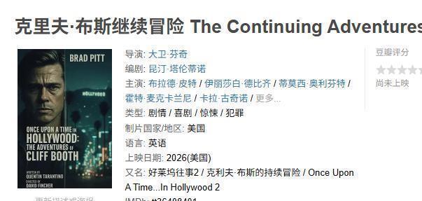 问:你的角色从屋顶掉下来,还要从行驶的车里跳出来。你有没有哪怕一刻想过:“你知道吗?我要像汤姆·克鲁斯那样,老子要自己上。”小李: (微笑)有些特技是我做的,有些不是。如果我从那个屋顶掉下来,我们就没法继续拍摄了,即使是特技演员也得吊威亚。我无论如何也做不到。其他事情,我做了我能做的,或者不如说是鲍勃能做的,比如他一开始根本追不上那些(玩滑板的)家伙。你以为你要看的是传统的间谍惊悚片,结果上了屋顶才10秒钟,他就跌落了两层楼,然后被泰瑟枪电击了。问: 大卫·芬奇正在制作关于布拉德·皮特在《好莱坞往事》中角色的衍生作,你会参与吗?小李:早期确实有过相关讨论。说实话,我迫不及待想看到克里夫·布恩的故事被搬上银幕,不过这次我不会参与演出。我认为大卫·芬奇是执导这个项目的不二人选。昆汀是他的头号粉丝,我也深深钦佩他的作品,没有人比他更适合延续这种电影血统并讲述那段故事。这将是克里夫·布恩人生的新篇章。我十分期待能看到成片。