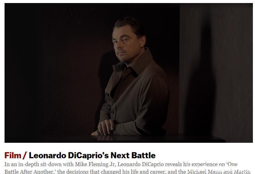 看起来,明年的奥斯卡影帝提名,必有莱昂纳多·迪卡普里奥一席。所以,很少接受采访的他,最近也和Deadline做了一次非常走心的深度访谈,可谓知无不言。通过这篇文章,也可以对他,以及他在《一战再战》里的角色有个更深的了解。